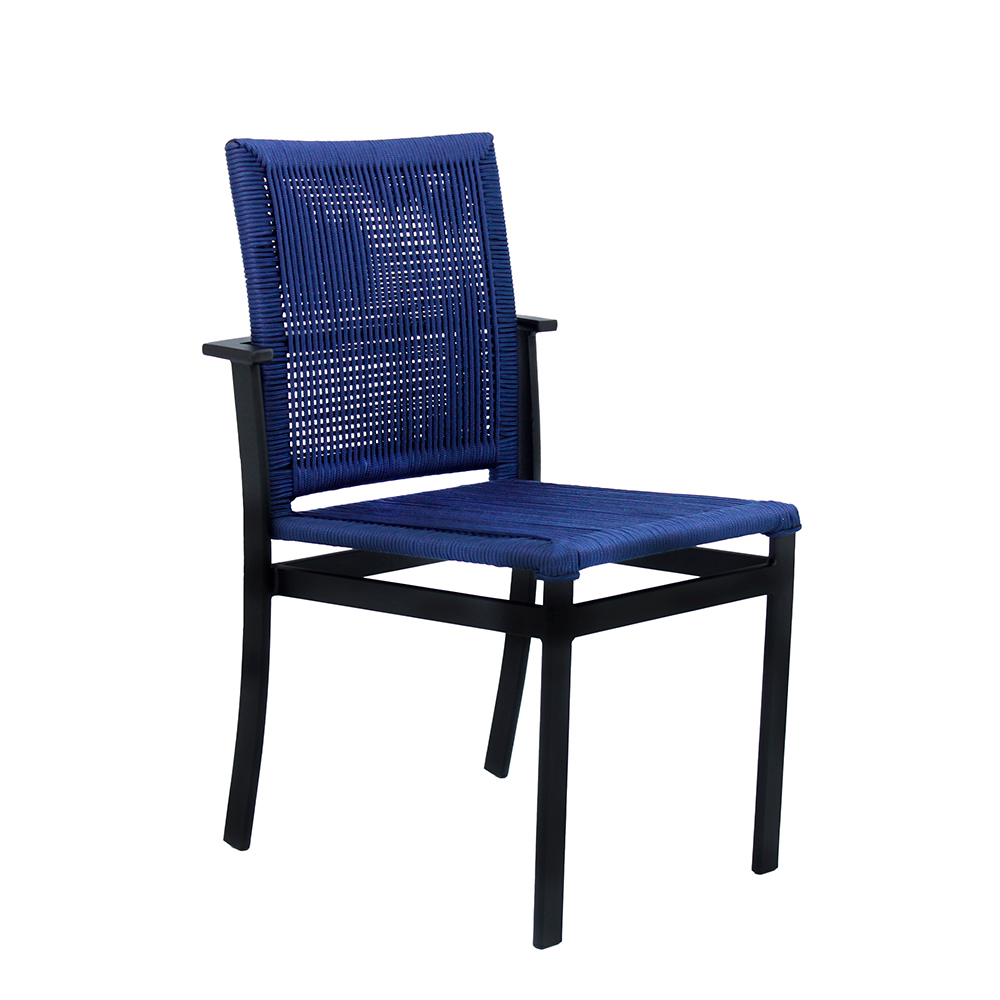 Fabricada com estrutura em alumínio reforçado e acabamento em pintura eletrostática, essa cadeira oferece excelente resistência e longa vida útil. O grande diferencial está no trançado artesanal em corda náutica, que proporciona um visual premium e maior conforto no uso diário. Além disso, o modelo sem braço é mais prático para encaixar em mesas e otimizar espaço, sendo ideal para áreas com circulação menor.