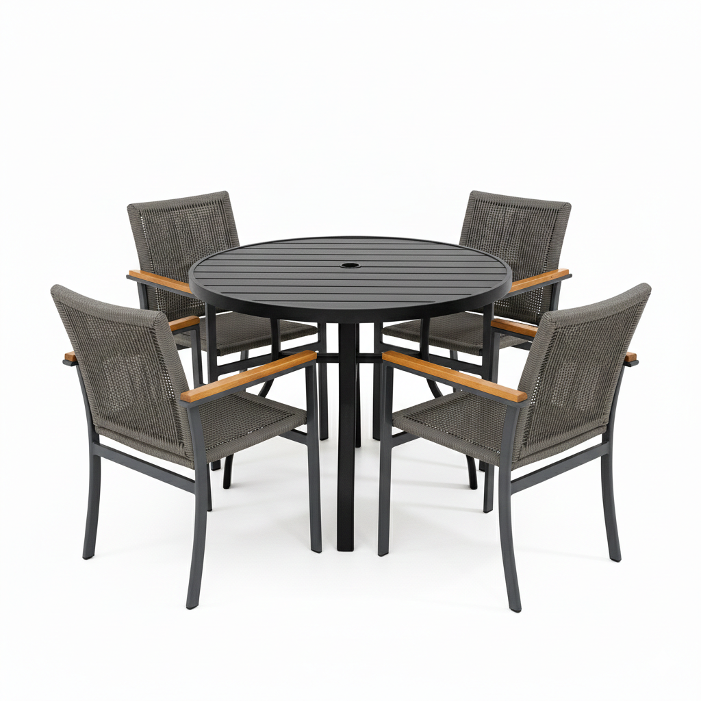 O jogo de mesa com 4 cadeiras em alumínio e corda náutica é a escolha ideal para quem busca móveis resistentes, confortáveis e elegantes para áreas internas e externas. Perfeito para jardim, piscina, varanda, sala, cozinha e espaço gourmet, combina design moderno com alta durabilidade, suportando sol, chuva e uso diário.