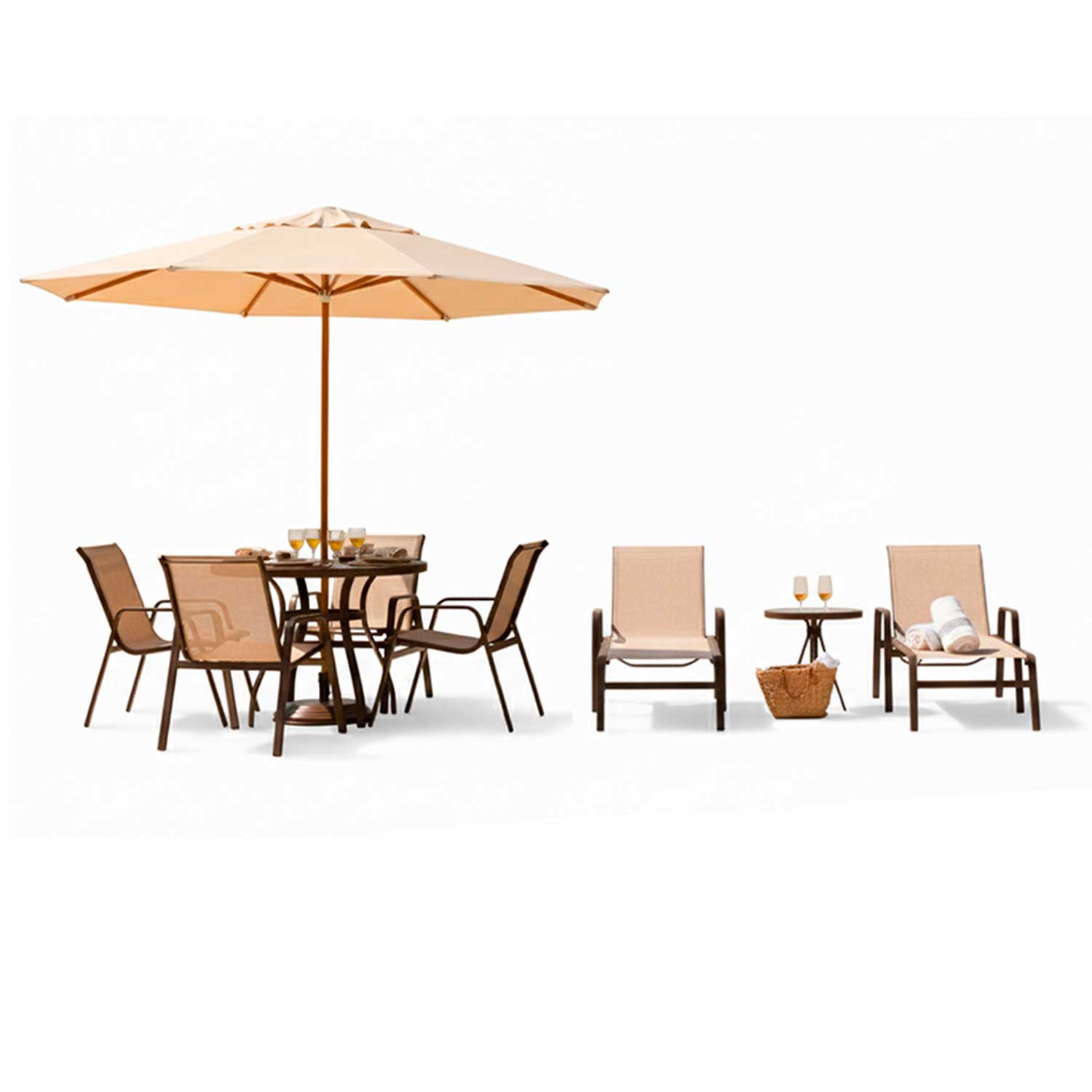 Fabricado com estrutura em alumínio reforçado e pintura eletrostática, o conjunto oferece alta resistência à corrosão, ferrugem e intempéries, sendo ideal para áreas externas e regiões litorâneas. Os assentos e encostos em tela sling garantem conforto térmico, ventilação e secagem rápida.