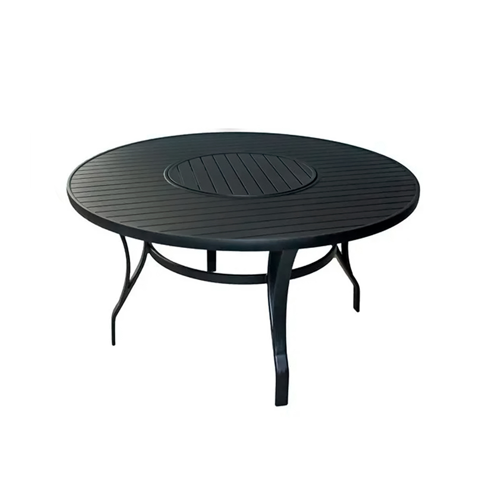 O grande destaque desta mesa é o centro giratório, que facilita na hora de servir refeições, petiscos e bebidas, deixando os encontros em família e com amigos muito mais práticos e organizados. Produzida com alumínio reforçado e acabamento em pintura eletrostática, ela oferece alta durabilidade, é fácil de limpar e pode ser utilizada em área interna ou externa, mantendo o visual impecável por muito mais tempo.