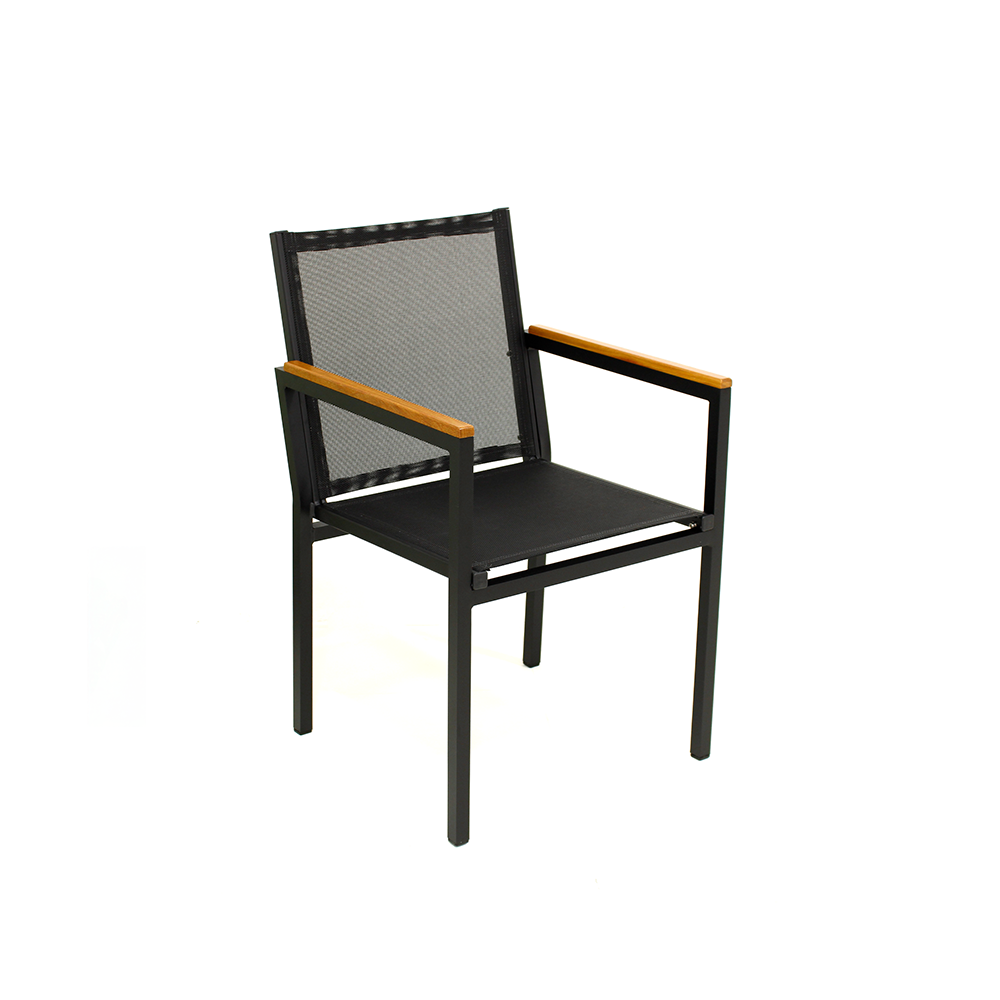 Sua estrutura em alumínio reforçado garante leveza, alta durabilidade e resistência à corrosão, sendo ideal para uso contínuo ao ar livre. O acabamento em pintura eletrostática proporciona proteção extra contra sol e umidade, mantendo o móvel bonito por muito mais tempo. O assento e encosto em tela Sling oferecem excelente conforto ergonômico e são altamente resistentes aos raios UV, não ressecando nem desbotando. Os braços com detalhe em madeira Cumaru adicionam um toque natural e sofisticado, valorizando ainda mais o design da poltrona.