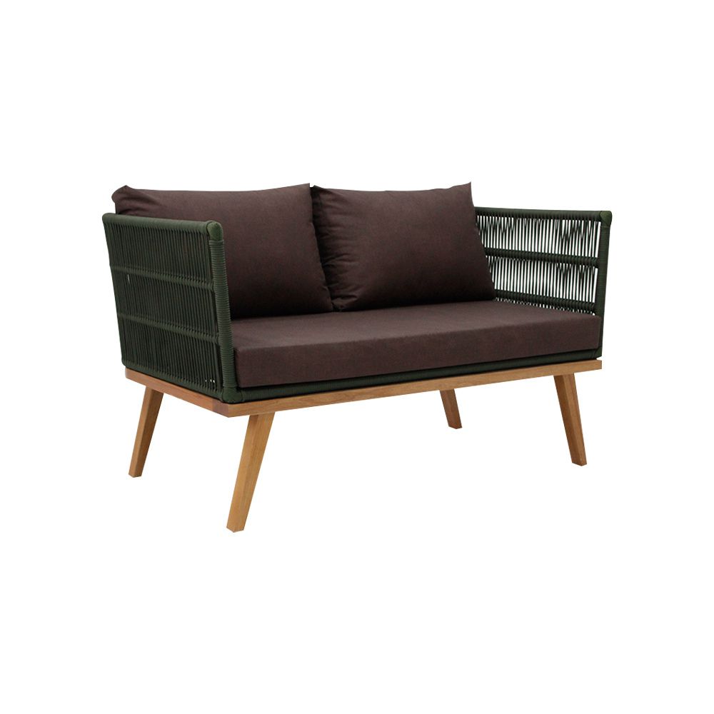 O destaque desta linha está no trançado artesanal em corda náutica, que proporciona um visual sofisticado e moderno, aliado à estrutura em madeira Jequitibá, conhecida por sua resistência, durabilidade e acabamento natural elegante. As almofadas com tecido Acquablock impermeável garantem conforto e praticidade, sendo ideais para ambientes internos e externos.